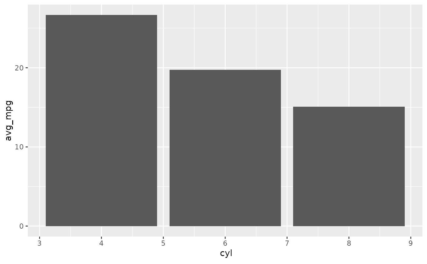 dbplot_bar(cyl, avg_mpg = mean(mpg))